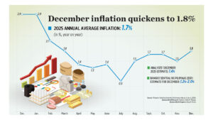 HIGHER FOOD PRICES during the holiday season lifted inflation to 1.8% in December, although the full-year average eased to 1.7% — the slowest in nearly a decade, the Philippine Statistics Authority (PSA) reported on Tuesday. Read the full story.
